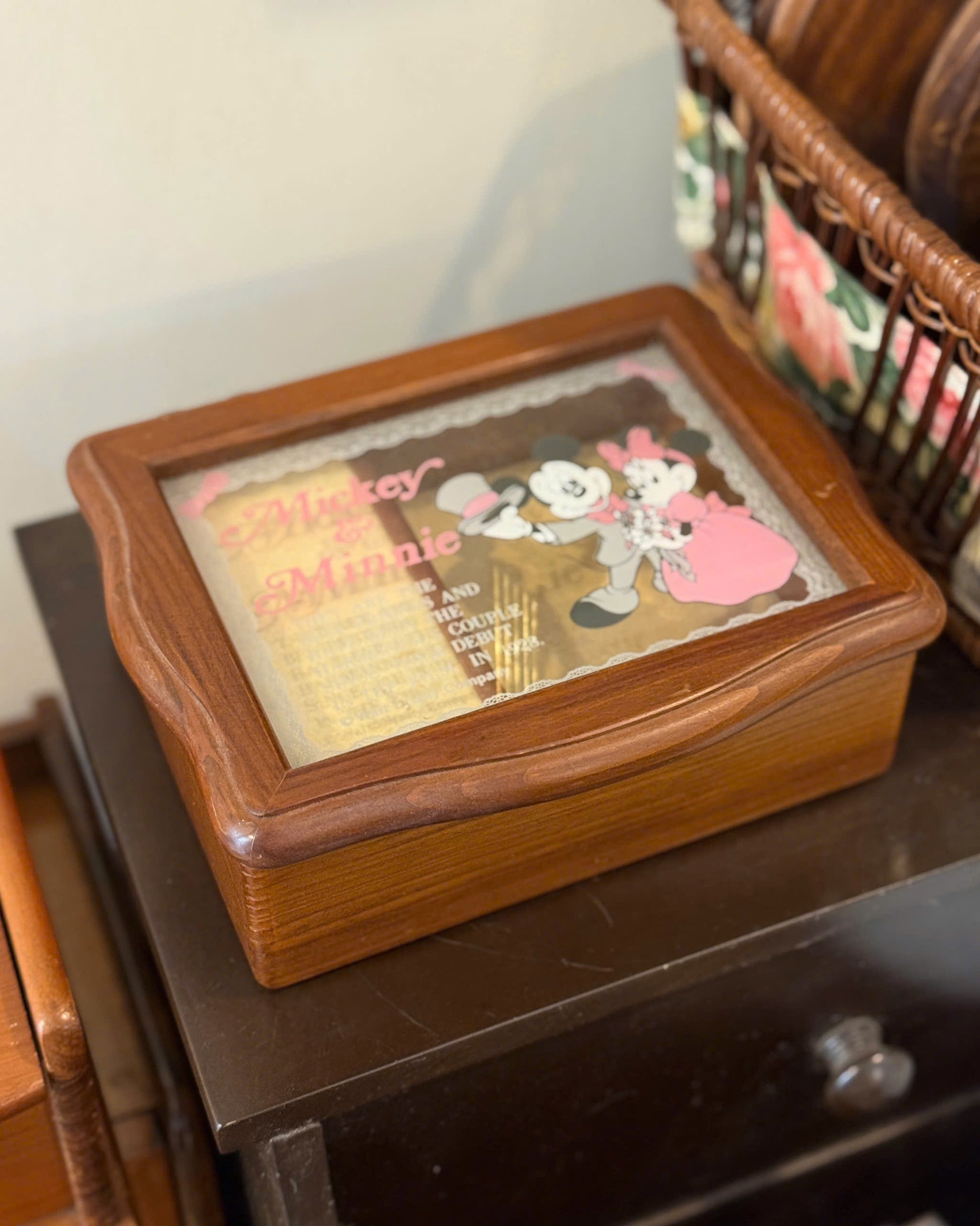 Vintage Mickey & Minnie Wooden Music Box